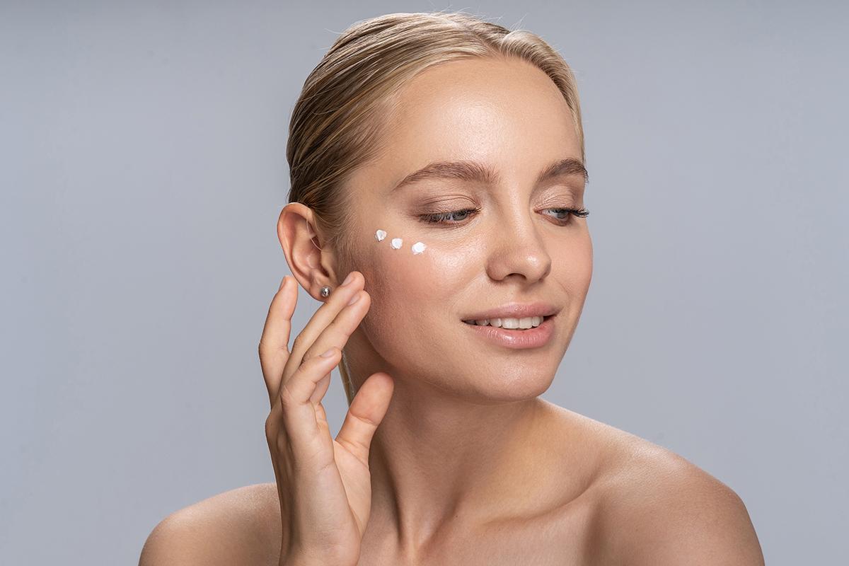 Após limpar e secar bem o rosto, você pode aplicar o contorno de olhos escolhido. Se for um produto com retinal específico para essa região, respeite o esquema de adaptação recomendado (por exemplo, três vezes por semana no início, aumentando aos poucos). Em dias sem retinal no contorno, use fórmulas hidratantes com ácido hialurônico, melatonina ou cafeína para manter a zona fresca e nutrida.