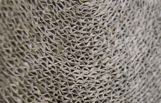 Uma vez concluído o processo de fabricação, o papelão pode receber formas diferentes, como papelão ondulado. A máquina utilizada para esse processo mede mais de 90 metros, com rolos muito pesados para ondular o papelão.
