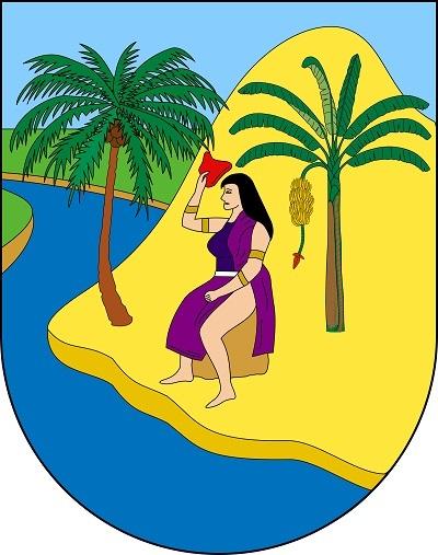 Em uma grande colheita de bananas é ilustrada sentada a parteira. Este elemento do escudo refere-se às várias culturas da região e à sua capacidade agrícola. A banana está especialmente representada, pois é ao lado do café o produto mais exportado da região.