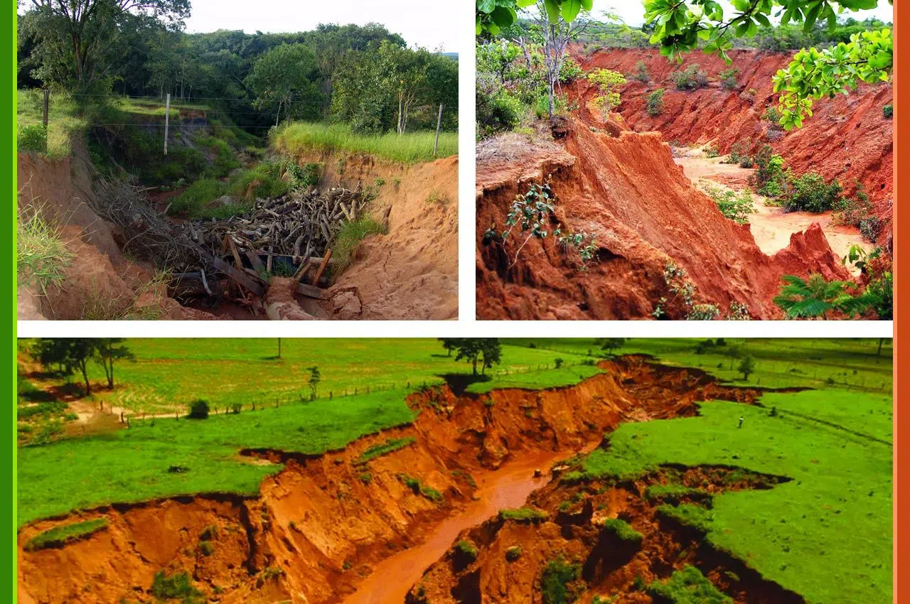Voragini (gully, “voçorocas”): stadio più severo, con grandi cavità e perdita massiva di suolo. Oltre a ridurre drasticamente l’area coltivabile, interrompono la continuità del paesaggio e richiedono interventi ingegneristici e biologici complessi per essere stabilizzate.