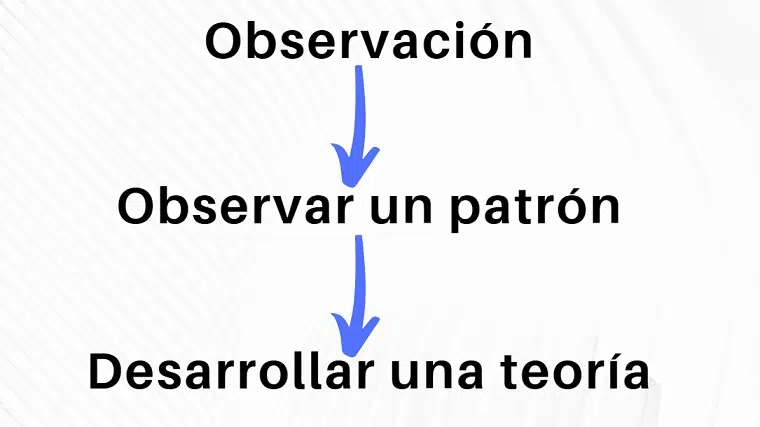 Nesse método, generalizações amplas são feitas a partir de observações específicas, portanto, pode-se dizer que passa do específico para o geral. Muitas observações são feitas, um padrão é percebido, uma generalização é feita e uma explicação ou teoria é inferida.