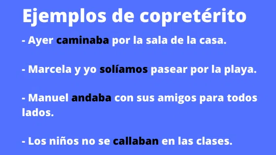 Os verbos em copreterito têm a capacidade de manifestar ou expressar tarefas ou hábitos que ocorreram no passado, mas a estrutura da sentença deve ser acompanhada pelo verbo conjugado “usado para” e um infinitivo (terminando em ar, er, go).