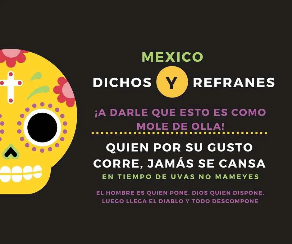 Os dizeres deste país têm a característica de misturar a sabedoria tradicional com um toque de malícia ou senso de humor. Eles sabem que o povo mexicano está aprendendo geração após geração.