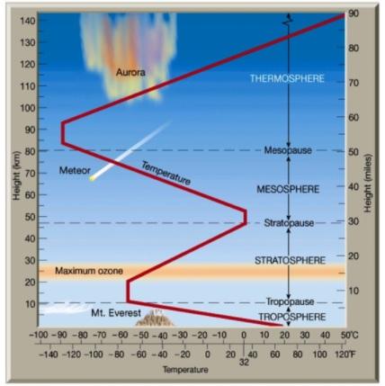 Para estudar e analisar como a atmosfera se comporta, é muito útil dividi-la em várias camadas, que mantêm o gradiente térmico mais ou menos constante.