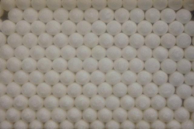 A imagem acima representa uma embalagem de algodão. Observe que cada um é cercado por seis vizinhos, sem contar outra possível linha superior ou inferior. A maneira pela qual as bolas de algodão são compactadas definirá seus tamanhos e, portanto, seus raios; como é o caso dos átomos.