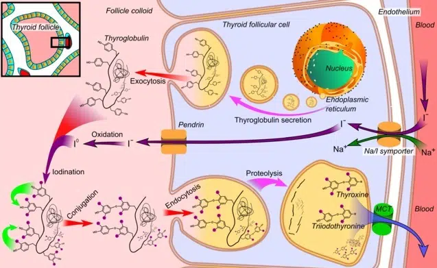Quando os níveis orgânicos de iodo são muito baixos, a síntese preferencial é T3, quantidades muito maiores de T3 são produzidas diretamente do que T4. Esse mecanismo consome menos iodo e libera diretamente a forma ativa do hormônio.