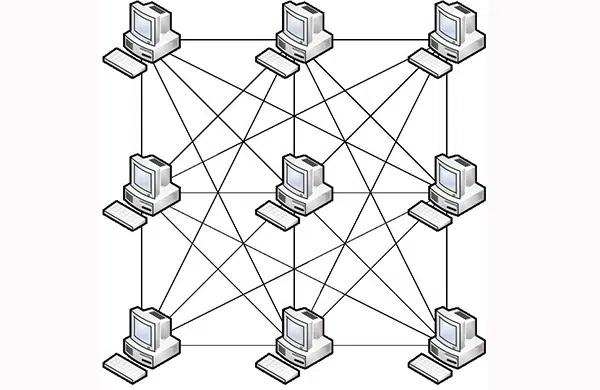Ou seja, é uma configuração de rede em que todos os nós cooperam para distribuir os dados entre si. Os dispositivos estão conectados de forma que pelo menos alguns tenham várias rotas para outros nós. Essa topologia é normalmente usada por redes sem fio.